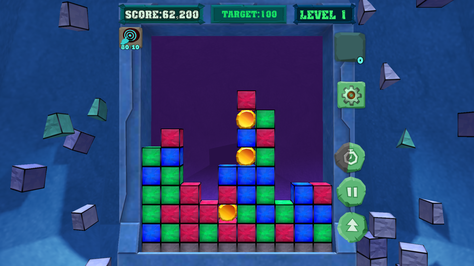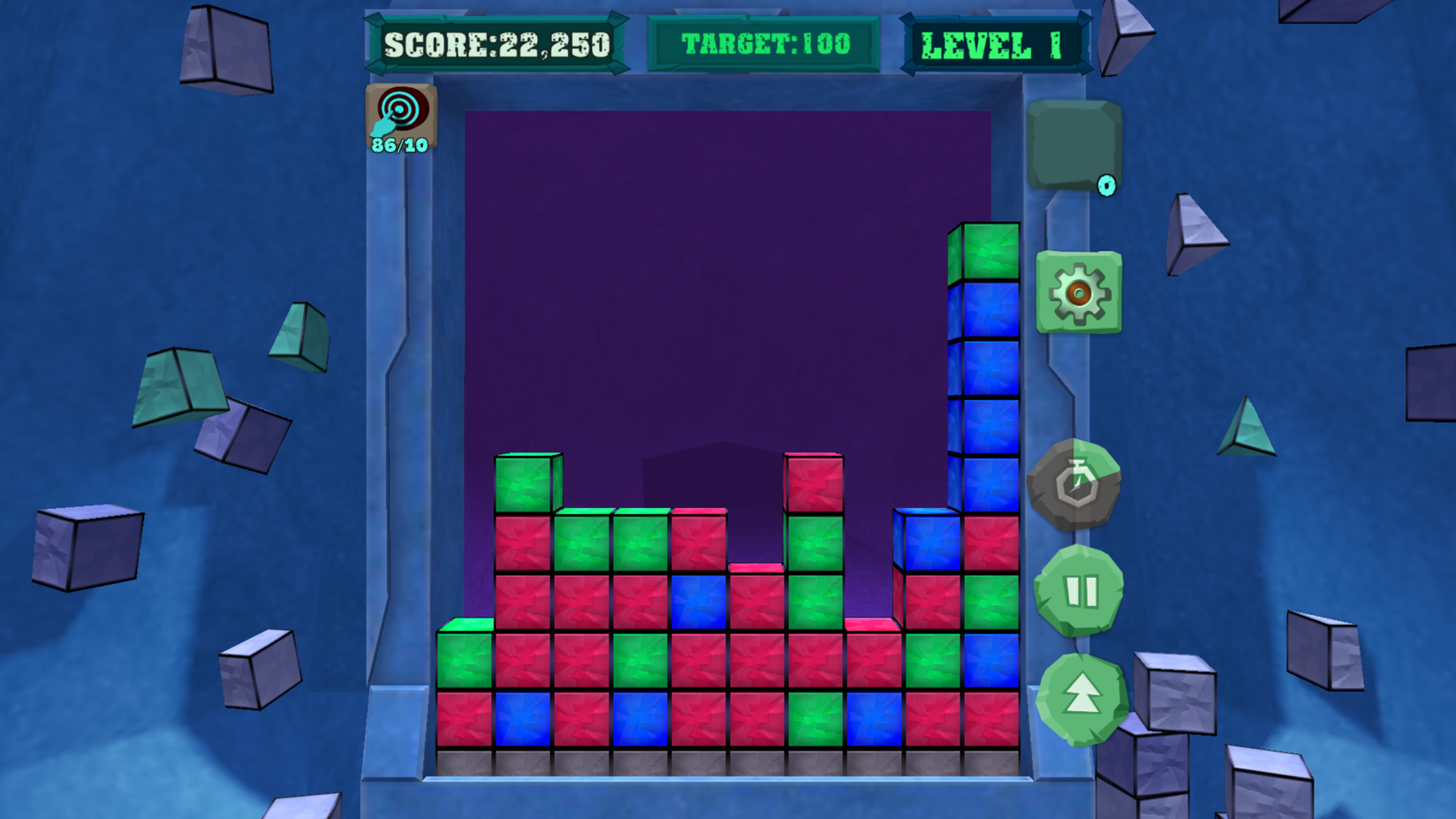 If you see that you can not cope with the flow of blocks and in risk of losing - do not panic in any way. Use special items that will allow you to destroy many more cubes in one click. If you are feeling that the puzzle is too easy for you and you want to play faster - press the speed button, and the cubes will start appearing faster.